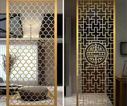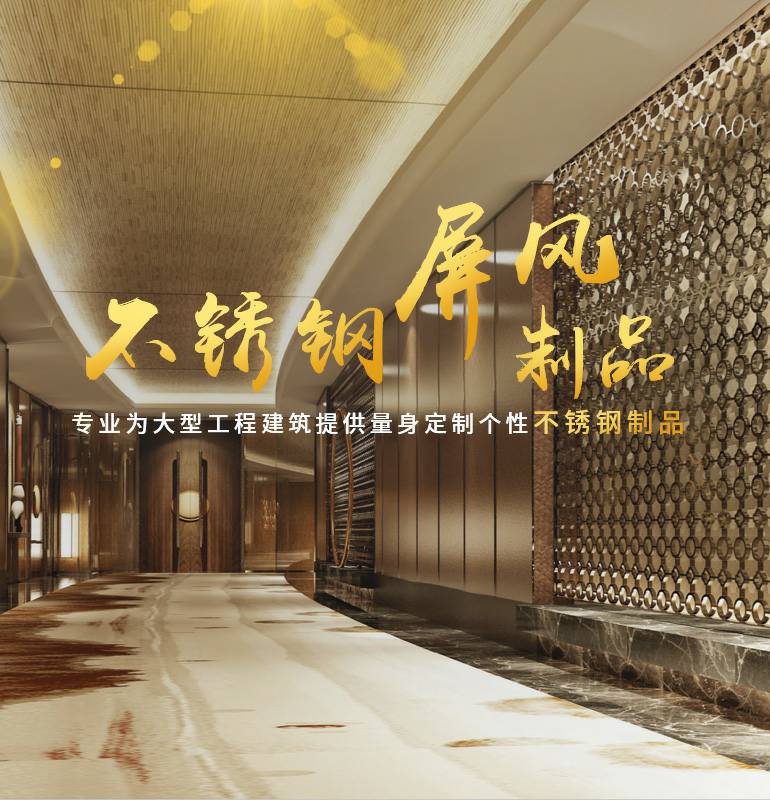 应用产品:不锈钢踢脚线、 不锈钢门套、不锈钢镜框、不锈钢镜面屏风、激光镂空屏风、管制屏风、不锈钢楼梯护栏、不锈钢大门